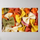 Many different flavors of fresh farfalle pasta. Italian food background.