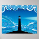 Póster Faro Art Nouveau en el mar