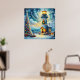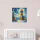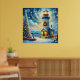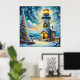 Póster Faro de árbol de navidad azul costero náutico