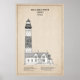 Esta ilustración única del faro de Big Sable Point se presenta como un plano técnico en tonos sepia, que combina la precisión del dibujo arquitectónico con el calor de la memoria histórica. El fondo marrón suave evoca papel envejecido y planos de ingeniería antiguos, lo que da a la estructura una cualidad atemporal y de archivo.