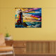El diseño presenta una impresionante escena de faro de vidrio pintado de imitación.