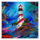 Hermoso faro de rayas rojas y blancas sobre un rocoso desborde rodeado de vientos coloridos y aguas agitadas AI Art creado por minx267