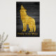 Esta fue creada para los que aman vivir en el lado salvaje. Tiene la silueta de lobo con la frase "nacido para ser salvaje". La imagen y las palabras están en Faux Gold. El fondo es un panel de madera gris oscuro (gris) realista. El poster da una mirada a la imagen pintada en la madera con el grano que se ve a través de ella.