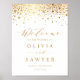 Añada un poco de brillo a su boda con este moderno cartel de bienvenida boda. Este elegante cartel de boda presenta falsos puntos de confeti de Relieve metalizado dorado. Personalizable añadiendo tus detalles. Este es un falso Relieve metalizado de oro - no habrá ningún Relieve metalizado real de oro.