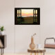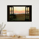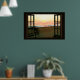 Póster Faux Window con Beach Sunset Ocean