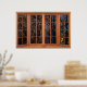 Póster Faux Wooden Bay Window Illusion - Autumn Trees