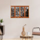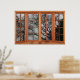 Póster Faux Wooden Bay Window Illusion - Winter View
