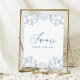 Haga que su ducha de novia sea inolvidable con este elegante Poster francés Blue Chinoiserie Floral Bridal Shower Favor. Este poster de inspiración vintage presenta un impresionante diseño de chinoiserie floral azul que le dará un toque de sofisticación a su evento. Este poster distintivo impresionará a sus huéspedes con sus detalles y su estilo de inspiración francesa. La suave paleta azul le da un toque refinado y romántico que celebra el día especial de la novia. Póngalo en un caballete cerca de los favores que le están dando a sus encantadores invitados.
