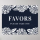 Póster Favores. Flores modernas marinas. Boda floral azul