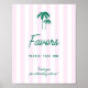 Este póster descargable de 'Favors' presenta un encantador fondo a rayas rosadas de estilo preppy que añade un toque de elegancia y feminidad, creando una atmósfera vibrante y acogedora. Adornando la parte superior del póster hay palmeras dibujadas a mano en verde que evocan la exuberante belleza de Palm Springs, añadiendo un toque juguetón y tropical. Abrazando la estética retro, la tipografía de letra manuscrita transporta a tus invitados a un paraíso moderno de mediados de siglo, haciéndolo ideal para aquellos que aprecian el encanto y el estilo vintage.