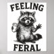 Póster Feeling Feral Raccoon Drink Coffee Funny Trash Pan