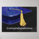 ¡Tú o alguien que conoces se está graduando! ¡Sí! Envía tus felicitaciones con nuestro elegante diseño con nuestro arte original de un gorro de graduación azul con una tassel amarillo contra un fondo negro texturado y la palabra, Felicitaciones en el fondo. Hay diseños personalizados disponibles.