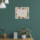 Elegante, vintage floral rosa rubor y rosa polvoriento en póster de felicitaciones rosa para la fiesta de compromiso. El texto personalizado te permite poner los nombres de la novia y el novio en un marco de acuarela transparente con estilo. El texto, la fuente, el color de la fuente y el color de fondo son todos personalizables con las herramientas de diseño de Zazzle.