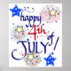 Póster ¡Feliz 4 de julio! con fuegos artificiales y estre