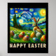 Póster Feliz Año Pascua Van Gogh Style Bunny And Eggs