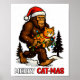 Póster Feliz Catmas Bigfoot y Luces Gorro de Santa Divert
