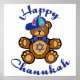 Un oso de peluche con una estrella judía en el pecho le desea a todos un Chanukah feliz.