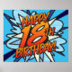 Póster FELIZ CUMPLEAÑOS 18 Comic Book Pop Art azul