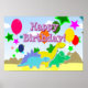 Póster Feliz cumpleaños Fiesta Globos Dinosaurios Poster