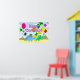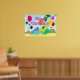 Feliz cumpleaños Fiesta Globos Dinosaurios Poster. Tres lindos dinosaurios personalizados: Stegosaurus azul, Diplodocus amarillo y triceratops verdes en un buen día en un paisaje prehistórico con árboles, cordilleras y vulcanos con estrellas de color y globos fiestas de colores brillantes y un cielo azul con nubes blancas poster con texto: "¡Feliz cumpleaños!", cambio/ personalizar/ cambio de texto en cualquier texto que te guste. Este lindo y feliz cumpleaños dinosaurios poster imprimir es totalmente personalizable, ¡agrega tus textos e imágenes! Un adorable personalizado dinosaurio feliz fiesta de cumpleaños poster para el pequeño gran hincha del dino!