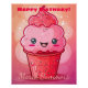 Póster Feliz Cumpleaños Helado Italiano Kawaii Dibujos An