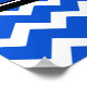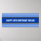 nombre de personalizable y edad feliz poster de banner de cumpleaños en divertido y atrevido brillante azul, negro y blanco retro chevron zigzags rapes patrón.