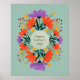Captura la esencia del Día de la Madre con nuestro impresionante poster floral, con un hermoso diseño botánico con flores moradas y naranjas sobre un fondo turquesa. Esta atractiva obra de arte iluminará cualquier habitación y servirá como un encantador recordatorio de tu amor y aprecio por mamá. Dale un regalo que le agrega un toque de elegancia a su espacio, haciendo que su Día de la Madre sea verdaderamente especial. Explora nuestra selección ahora y trae un estallido de belleza floral a su vida!