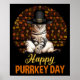 ¡Feliz Día del Púrpura! Este gracioso juego de palabras de Acción de Gracias accesorio sería genial en la cena de Acción de Gracias, una reunión familiar o un fiesta. Esto hace una idea perfecta para los amantes de los gatos de otoño o otoño para hombres, mujeres, adolescentes y niños. ¿Estás deseando asar el pavo, la salsa de arándano y el pastel de calabaza este Día de Turquía? ¿Estás planeando estar en coma alimenticio? ¡Entonces este diseño es para ti! Presenta una imagen de un gatito de tabby con un gorra peregrino sentado contra un patrón de hojas de otoño.