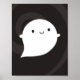 Un fantasma kawaii sobre un espeluznante y agitado fondo negro. Genial para Halloween.