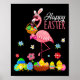 Póster Feliz Flamingo de Pascua con Bysket Hunti de Huevo