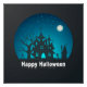 Póster Feliz Halloween azul y negro casa embrujada
