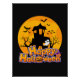 Una silueta divertida y juguetona de una casa embrujada brilla frente a una alegre luna naranja, con murciélagos volando por ahí, un fantasma amistoso ondeando y grandes letras de "Feliz Halloween" que realmente destacan. ¡Lo hice para celebrar la alegría de los simpáticos espías y las sonrisas de calabaza feliz! Es una escena de Halloween acogedora y familiar que trae una sonrisa y se puede ver fácilmente desde lejos, ¡lo que provoca alegría festiva para todos!
