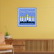 Decoración para las vacaciones con este poster menorah azul y blanco.
