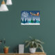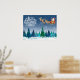 Póster Feliz navidad en el bosque de nieve y Santa en Sle