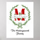Póster Feliz Navidad Monograma Wreath Personalizado