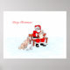 Póster Feliz Navidad - Papá Noel con gato y perro