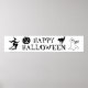 Feliz Halloween espeluznante decoración poster en blanco y negro, jack o linterna, calabaza, bruja, fantasma, cráneo, luna, gato negro