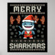 Póster Feliz Sharkmas Navidades de tiburón Nochebuena niñ