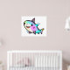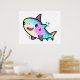 Póster Feliz sonriente tiburón bebé con burbujas.