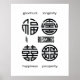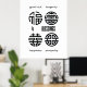Póster Feng Shui Wall Art Cuatro Bendiciones Negro y Blan