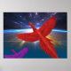 Aves fénix míticas volando alto - tan altas que se lanzan al espacio. Arte digital original de Yuichi Tanabe.