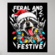 Póster Feral And Festive Funny Christmas Rocker Raccoon S