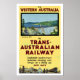 Poster de viajes de época que promueve el turismo hacia el oeste de Australia por el Ferrocarril Trans-Australia.