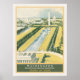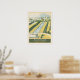 El afiche vintage presenta una escena nostálgica y cautivadora del icónico edificio del Capitolio de los Estados Unidos en Washington, D.C., rodeado de exuberantes jardines y situado contra un pintoresco cielo. Con su diseño clásico, sus colores intensos y su elegante tipografía, el poster exuda el encanto de los viajes en una época pasada, invitando a los espectadores a descubrir el significado histórico y político de este famoso monumento.