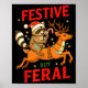 Póster Festive But Feral Funny Christmas Raccoon Riding R