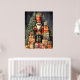 Trae la magia eterna de las vacaciones a tu casa con esta hermosa huella de arte. Esta pintura clásica muestra a un soldado de secuaz tradicional haciendo guardia entre árboles navideños festivos y regalos coloridos. El estilo artístico y pintado le da un toque de elegancia y nostalgia, lo que lo convierte en el centro perfecto para su decoración de vacaciones.