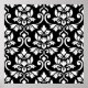 El diseño de la superficie del damasco de estilo barroco influenciado por la cosecha de vintage con detalles blancos sobre un fondo negro.