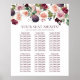 La sofisticada recepción floral de boda, la tabla de asignación de fiestas o duchas, con paredes pintadas a mano, para 8-10-12 mesas superiores, con un rincón acuarela, estampado de flores de marsala de color burdeos rojo y rosa negro con un acento azul marino adornado con laurel botánico y acentos rojos oscuros. De la colección "Boho Bloom", esta disposición incorpora ricas ramas de flores silvestres bohemias con flores radiantes y vegetación eucaliptus. Para otros colores o productos a juego, por favor visite la tienda JustFharryn Zazzle, o contacte con el diseñador, c/o Fharryn@yahoo.com Todos los derechos reservados. #bohochic #zazzlemade