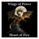 Un violento dragón dorado que cría con la luna llena en el fondo. El eslogan 'Alas de poder, corazón de fuego' rodea la imagen. Una gran imagen para un hombre o una mujer que disfruta de la fantasía. Contiene contenido generativo.