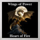 Un violento dragón dorado que cría con la luna llena en el fondo. El eslogan 'Alas de poder, corazón de fuego' rodea la imagen. Una gran imagen para un hombre o una mujer que disfruta de la fantasía. Contiene contenido generativo.
